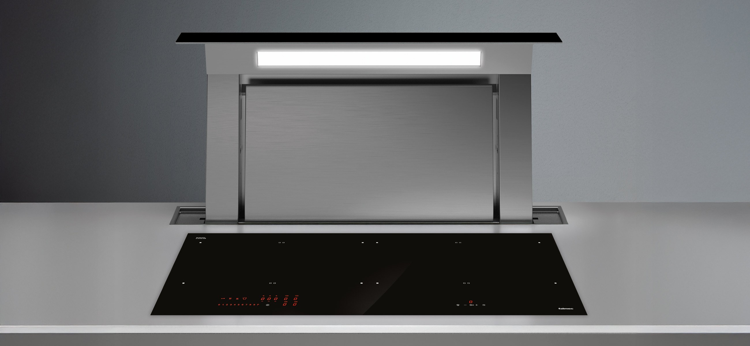The hood can also be controlled directly from the Falmec induction hob using Dialogue System technology with its automatic function, thus optimising ease of interaction.