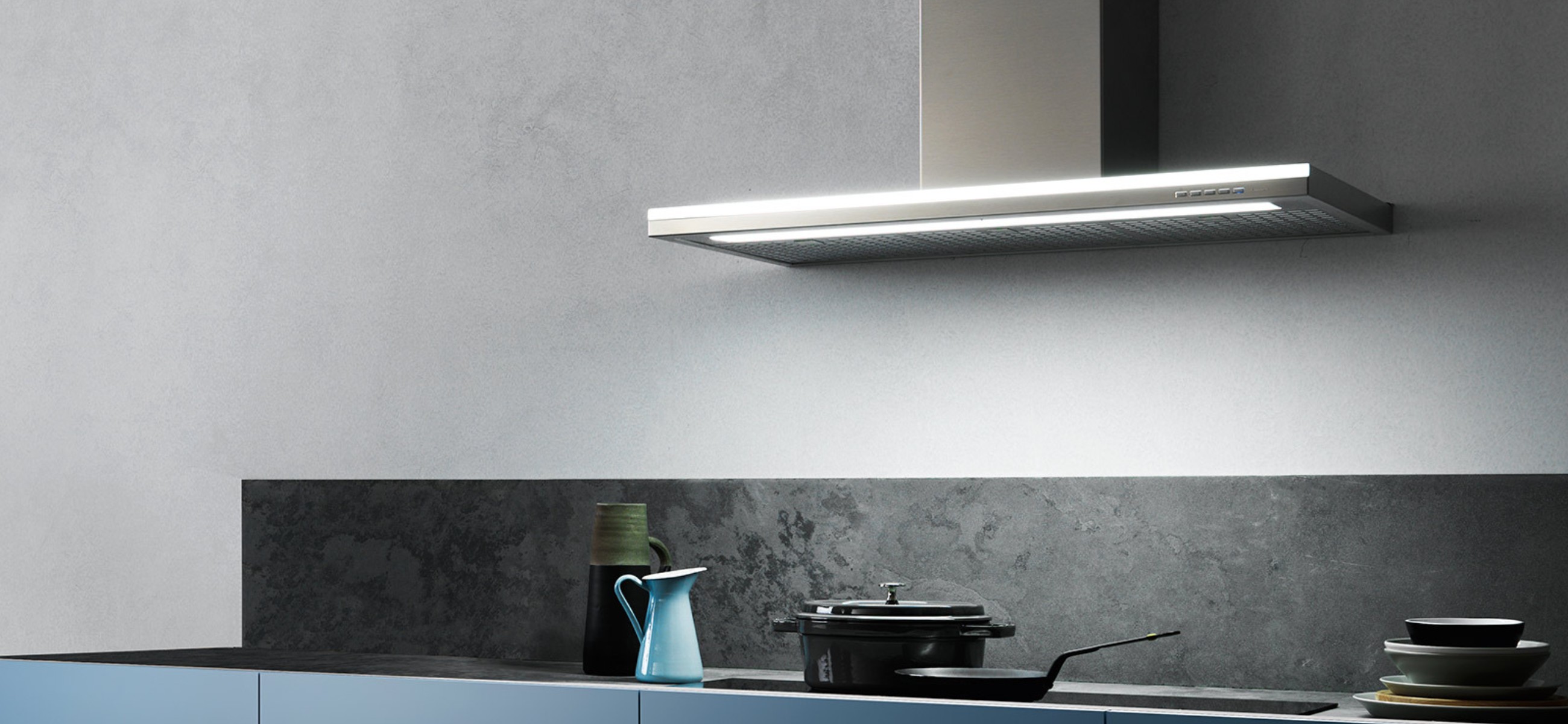 One of Falmec's most famous models, with its sleek, technical, and ever-fashionable design, as well as a distinctive visible steel filter, Lumen continues to stand the test of time. An illuminated line on its front provides your kitchen with a pleasant lighting effect. A powerful motor, with an electronic push-button panel, guarantees excellent suction performance. In addition, the exclusive NRS (Noise Reduction System) technology-equipped version of this hood reduces noise to an absolute minimum.