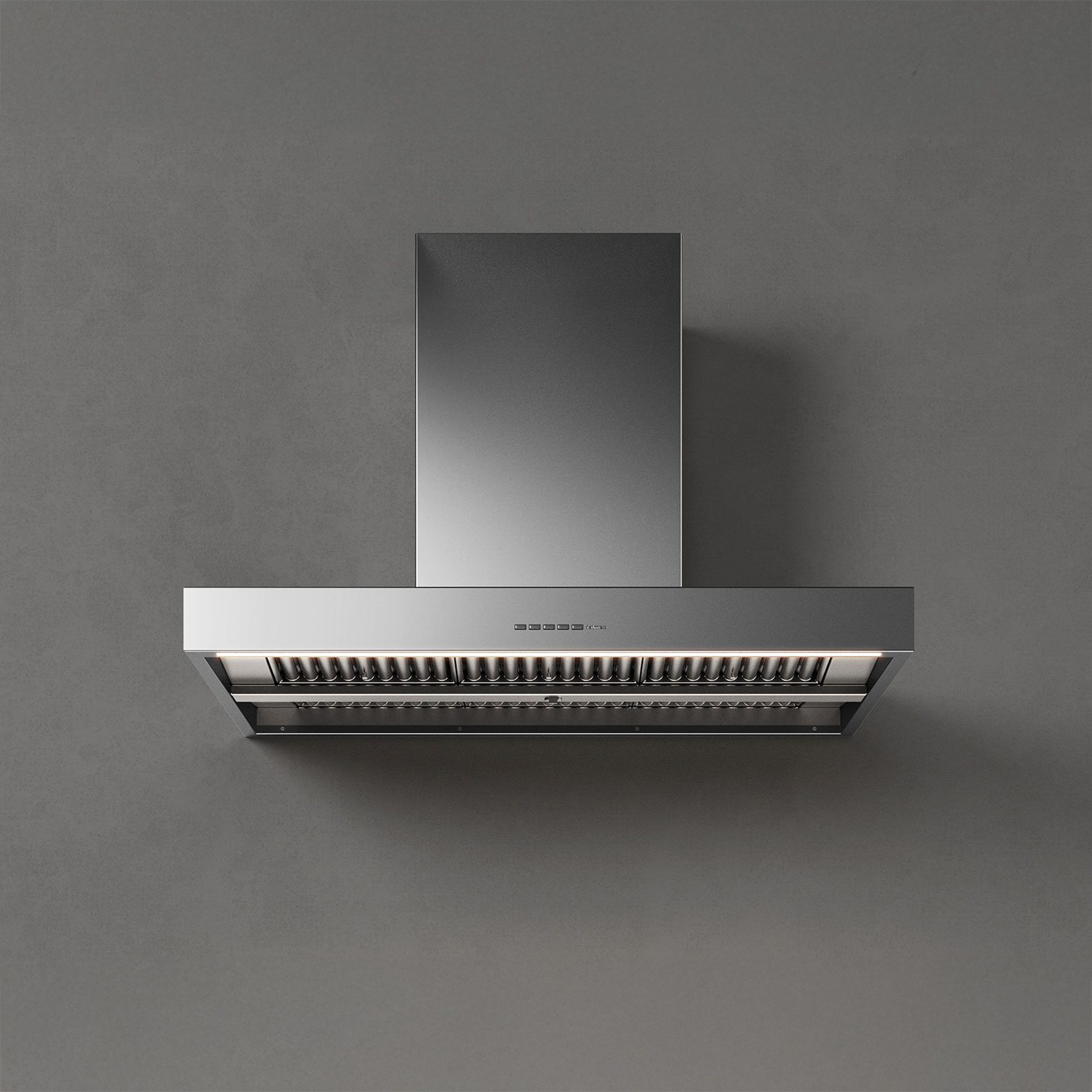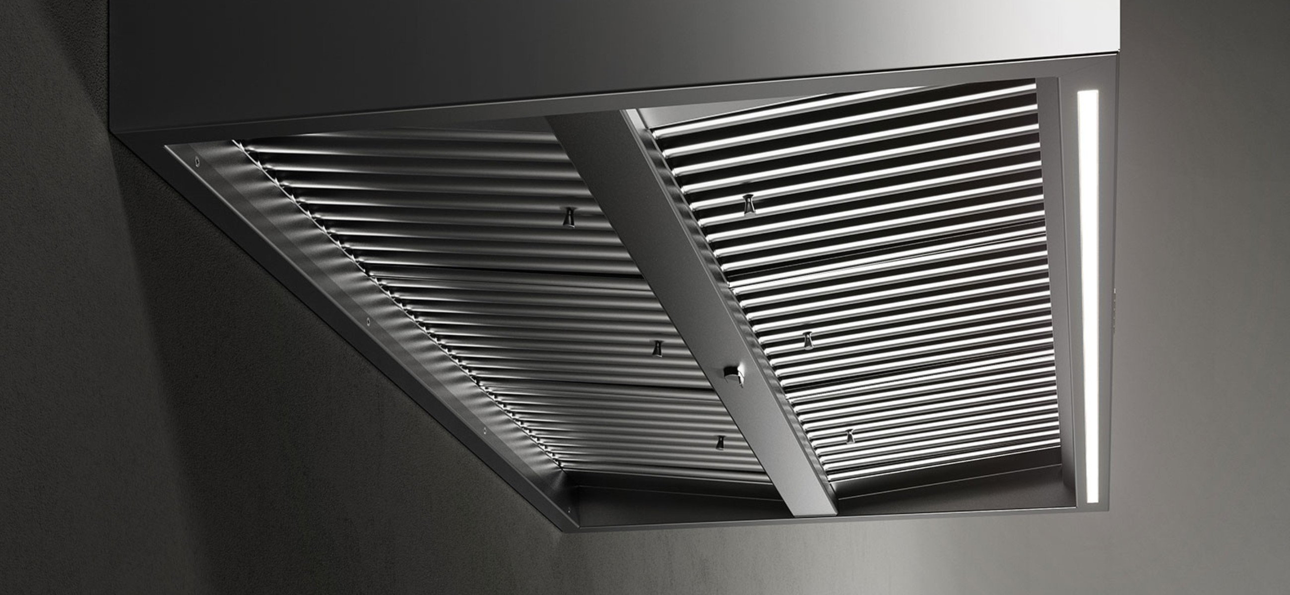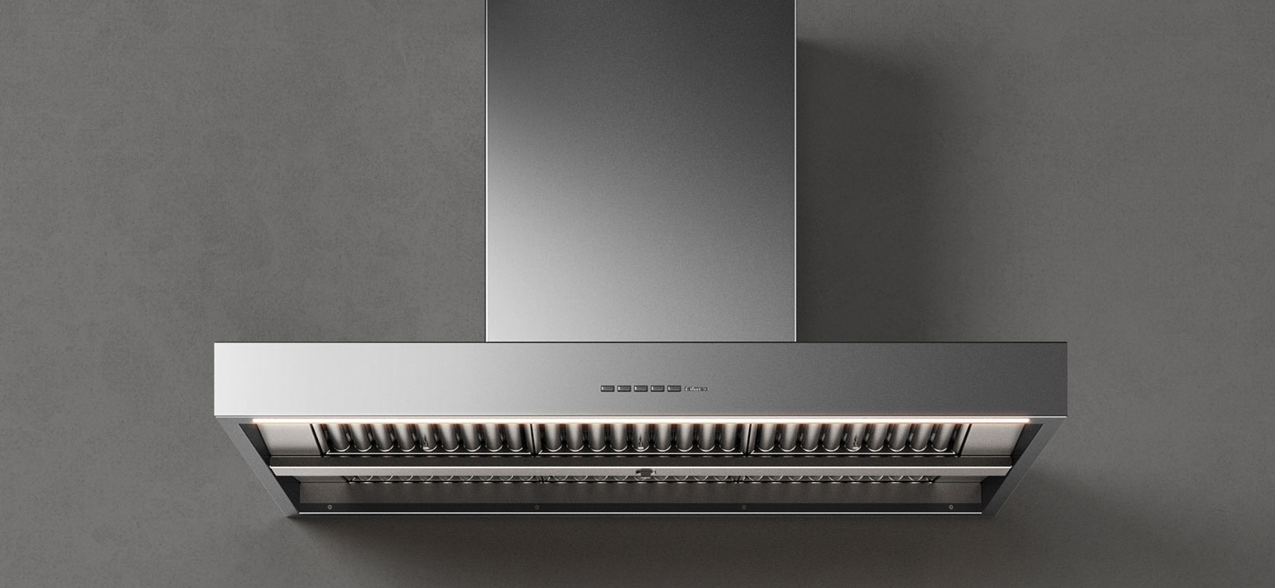 The plane is characterised by clean shapes and useful features, including a hood designed for a range of environments. Plane's value lies in its perfectly constructed details: an object that combines functionality with a clean, minimal design and that is available in various finishes. A perimeter suction panel not only guarantees stylistic precision, but also improves suction performance and ease of maintenance.